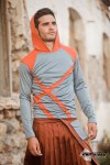 Sedas metalizadas; muselinas de seda; sargas elasticadas; punto viscosa; lycra y popelines, llenan de armonía una colección cuyo punto de ruptura viene dado por un complemento: la falda para hombres. Según me cuentan, esta tendencia responde a una reivindicación personal: “queríamos quitar la feminización de esta prenda, queríamos sacar un look que fortaleciese la masculinidad de la falda en un hombre, queríamos un hombre totalmente masculino aunque fuese con falda”.