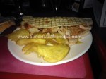 Opciones, muchas. El carnívoro es una gran rebanada de pan con dos lomos, hamburguesa y huevo a la plancha, acompañada de patatas fritas y ajonesa. Bueno y el pan lleva algo de lechuga, pero para alimentar la conciencia no el estómago. Suficiente para cenar, pero si te ves con ganas el burrito está buenísimo con su verdurita y su pollo. La salchicha con beacon es una opción para no equivocarse. Me llamó mucho la atención el sandwich de la casa. Tomate, jamón dulce y queso. En el pan de la tapa del sandwich un agujero de vaso relleno con un huevo. Pero no todo es carne. La brocheta de gambas lleva algo más que un par de gambas. El espeluznao es de corte heavy metal con su ajonesa a tope.