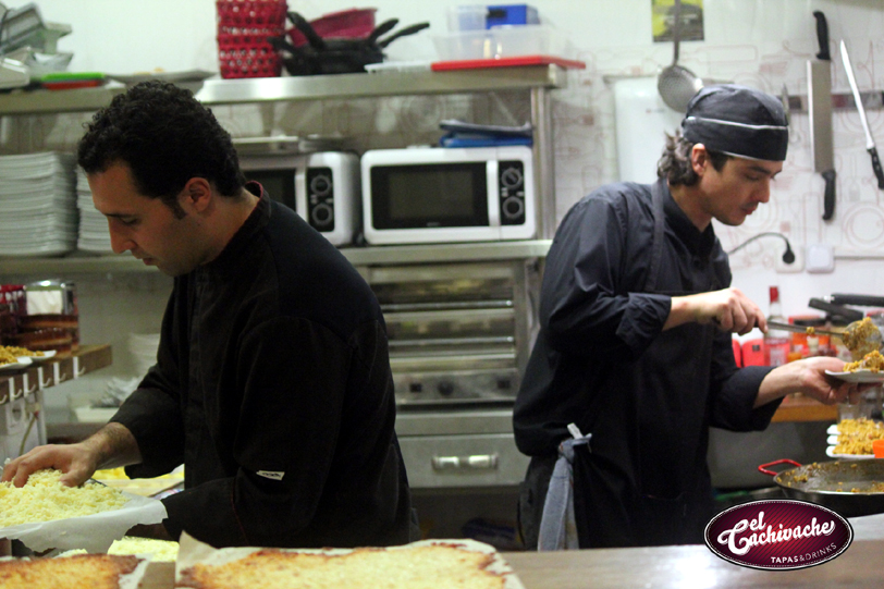 Amador y Pablo en la cocina del bar El Cachivache