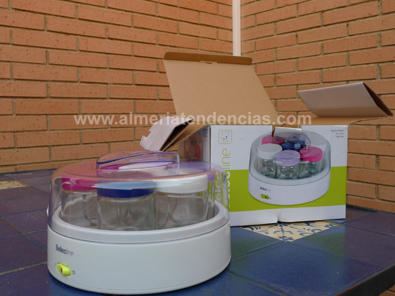 En los años 80 se vendieron muchas yogurteras que pronto perdieron su uso. La mejor opción es rescatar estos pequeños electrodomésticos del fondo del armario seguro que conocéis a alguien que tenga una. Si tenéis que comprar, tened en cuenta que su función es muy sencilla. Están apareciendo en el mercado yogurteras con pantalla digital que personalmente no creo que aporte nada acorde con su precio. Para seleccionar recomendaría las que tienen una superficie única sobre la que poner los tarros de yogurt frente a las que tienen huecos específicos para cada tarro. Así, cuando se vayan rompiendo los tarros será más fácil de encontrar sustitutos. Otra recomendación es que el cierre de los tarros sea a rosca. Podéis encontrar modelos muy económicos. Hace poco regalé una yogurtera y opté por una de las que veis en las fotos. Es la más económica y bonita que encontré. No recuerdo el precio exacto pero sé que era inferior a 15 euros, así que se amortiza pronto.