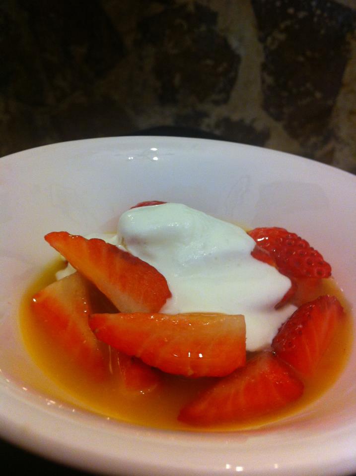 Fresas con crema de naranja y nata en Pimienta Rosa