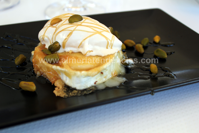 Queso de cabra plancha con helado de foie y miel, en La Soleá Almerimar
