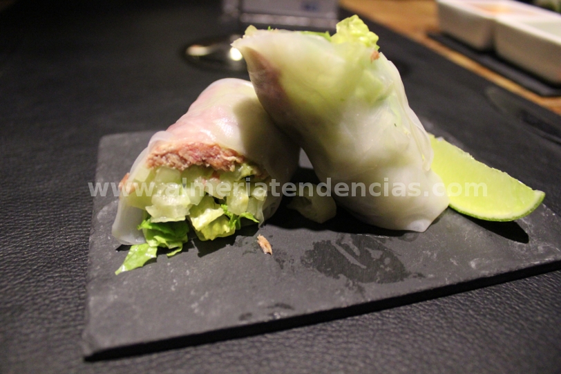 Rollito vietnamita con confit de pato, salsa de chile dulce y mojo de cilantro – iván abril – bacus