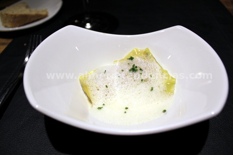 Dumpling de gambas y setas shitake, su sopa espumosa y espárragos verdes – iván abril – bacus
