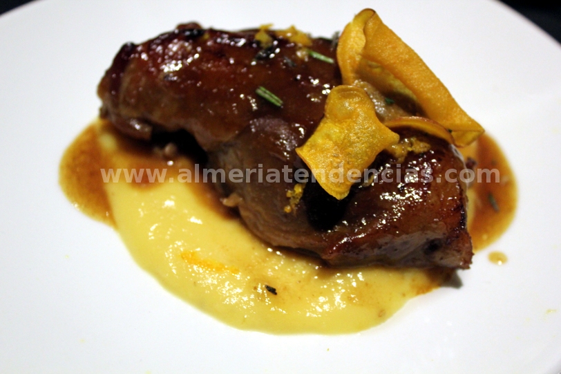 Carrillera de cerdo ibérico con soja y naranja, puré de manzana y piña – iván abril – bacus