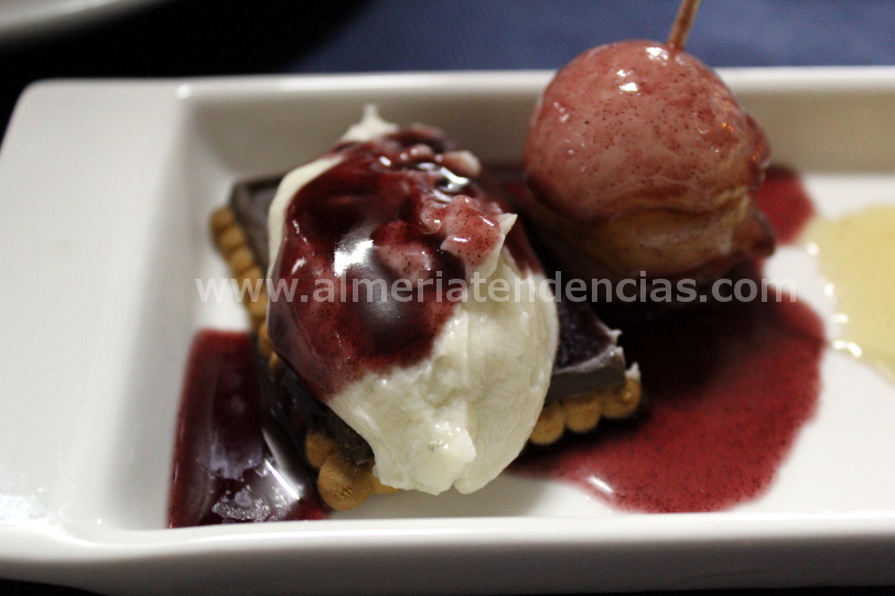 Delicia de quesos Mascarpone y azul sobre chocolate en Kiosco Almadrabillas